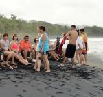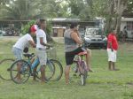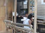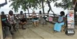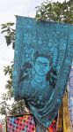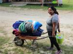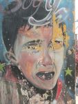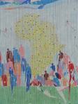 „Ich will damit meine tiefe Sorge um den Regenwald zum Ausdruck bringen. Mit dem Rückzug der Guerilla durch das Friedensabkommen drängen Paramilitärs und Siedler rücksichtlos in dieses Gebiet ein und holzen den Regenwald ab. Die Kunst ist mein Beitrag, auf diesen Wahnsinn aufmerksam zu machen. Ich komme beim Malen mit den Menschen ins Gespräch so wie mit euch.“