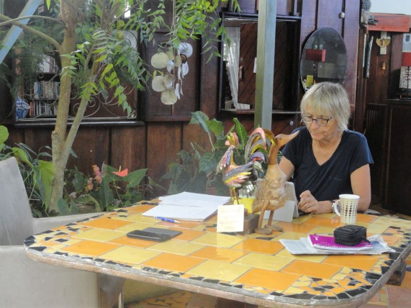 Ein junger Mann am Nachbartisch fällt uns auf. Philosophiestudent Julian liest Siddartha von Hermann Hesse in deutscher Sprache. Er möchte „die großen Philosophen in der Originalsprache lesen können“.