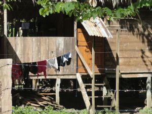 Ein Fliegengitter fehlt, die Balustrade grenzt an den üppigen Regenwald. Um zwei Uhr ist für mich die Nacht vorbei, als sich eine Fledermaus von außen auf das Moskitonetz setzt. Tollwut- die einzig rationale Erklärung für die mangelnde Scheu des flugtauglichen Tiers. Ebi an meiner Seite lässt sich partout nicht wecken. Bis zum frühen Morgen halte ich Wache, damit sich der Überraschungsgast nicht durch das Netz frisst.